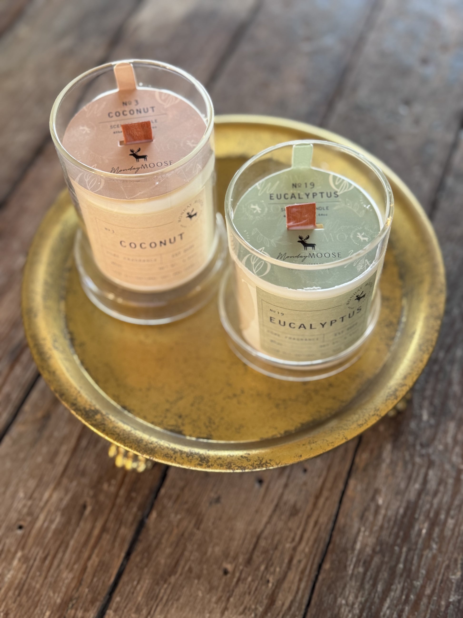 Bring the spa to you with our Eucalyptus Candle. Made from 100% eco-friendly soy wax, this 5.64oz candle features natural essential oils and a non-toxic wood wick for a soothing, crackling burn. With hints of eucalyptus and clary sage, it's the perfect addition to any self-care routine. Light it up and unwind!