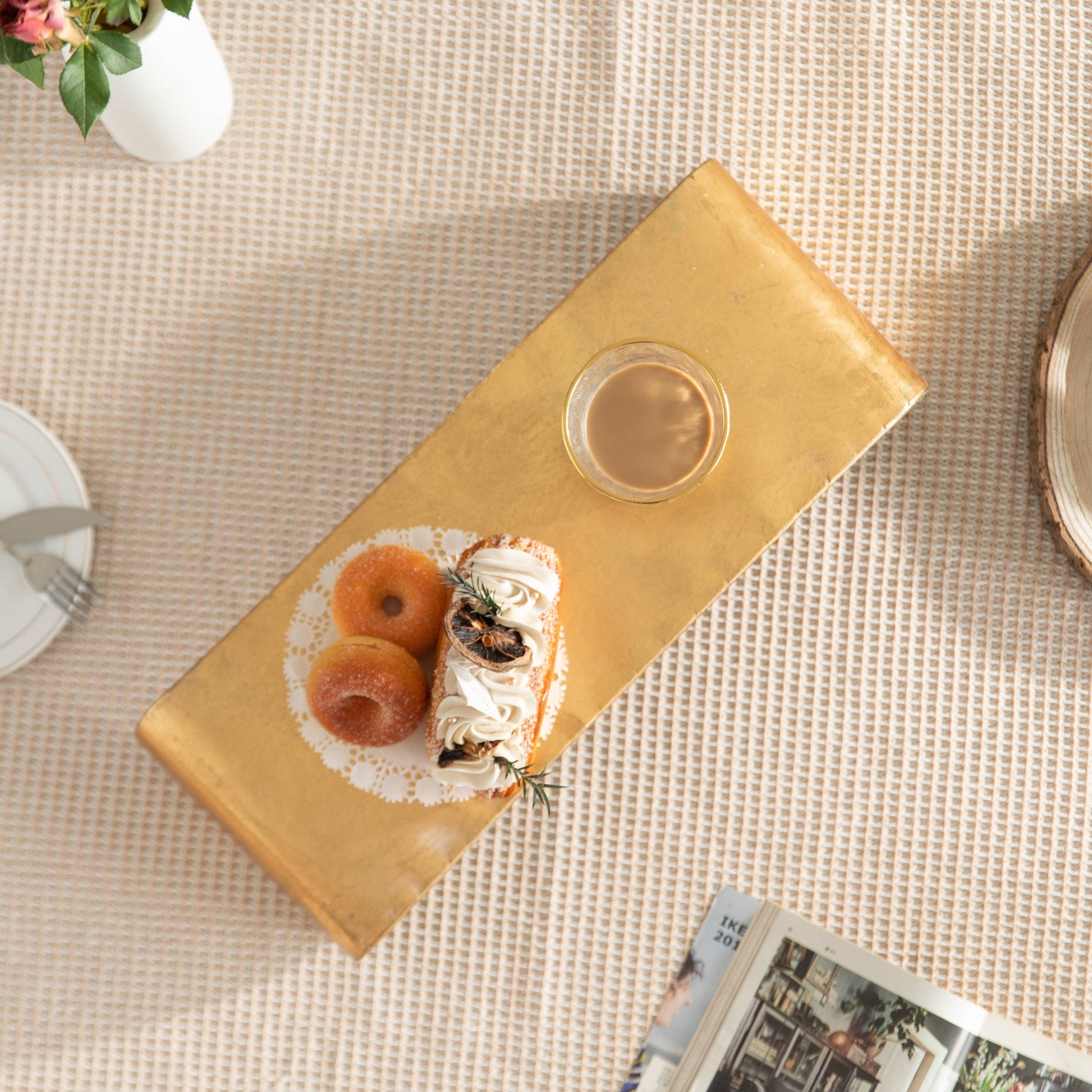 Gold Stand Rectangular Shape Rustic Tray & PC Monitor Stand: Medium