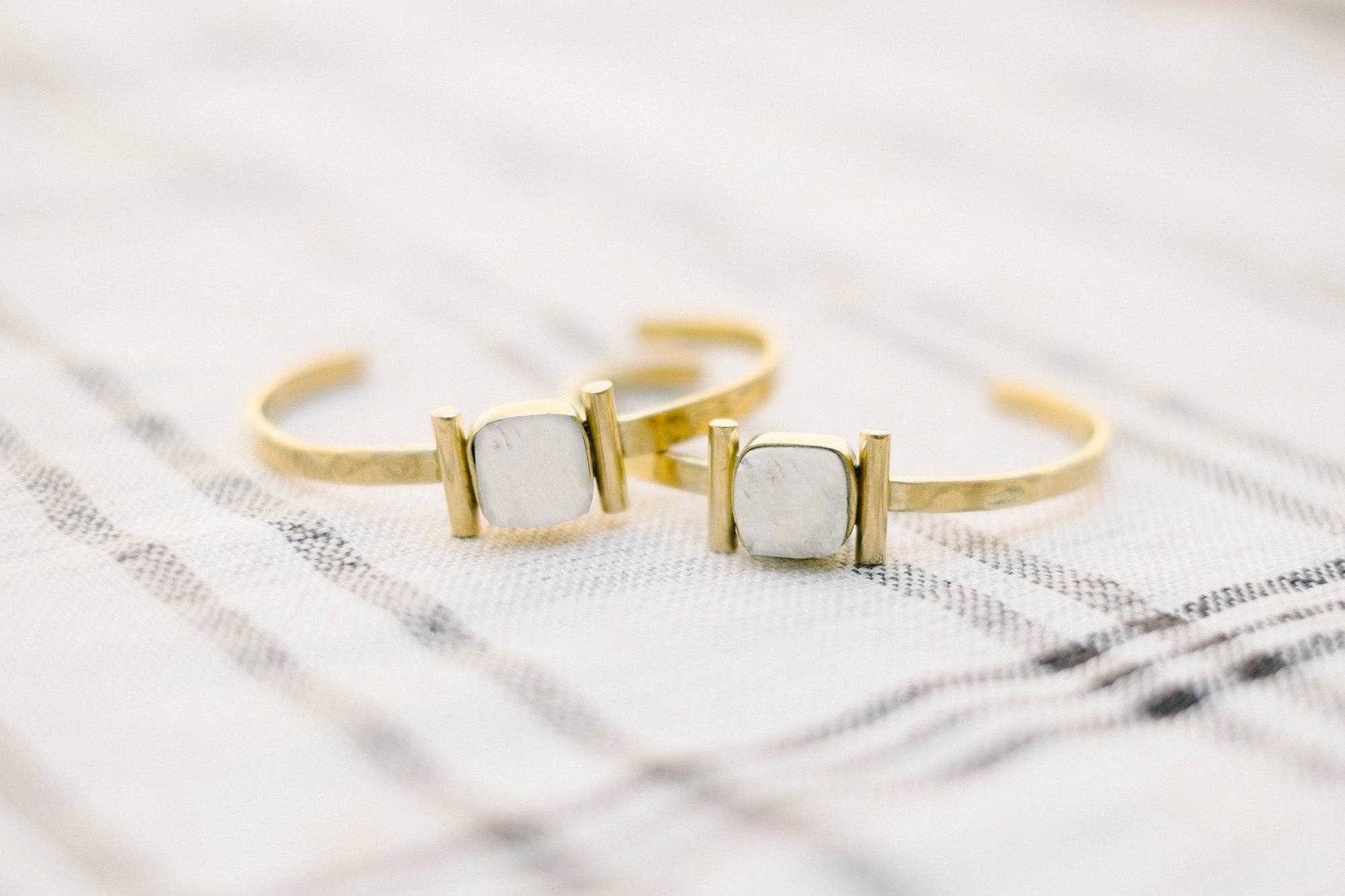 Handcrafted by talented artisans in the impoverished Kibera area of Nairobi, our Halo cuff is made with up-cylced bone and brass. It is hand soldered, cut and hammered to create a unique design perfect on it's own or layered with other bracelets. Width measures 2.75 in. --- Jimani Collections is a design-focused organization partnering with skilled yet severely underprivileged artisans in Nairobi, Kenya. We produce high-quality, artisan jewelry and home goods that help fund entrepreneurship classes for women and improve the lives of our artisans.