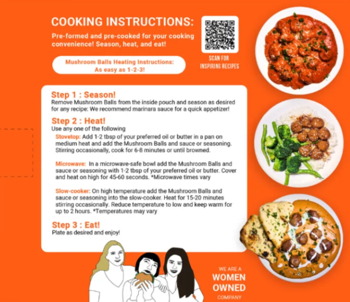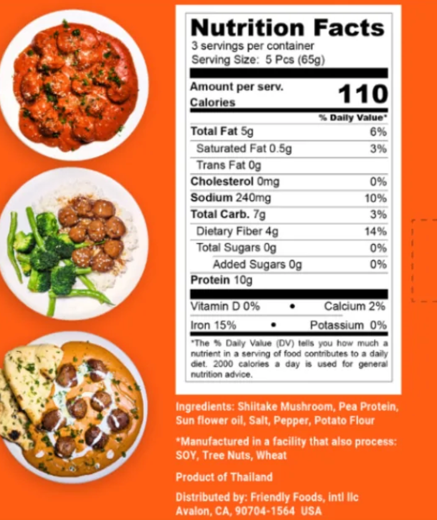 Shroomeats® Balls is a fan favorite for parties or a quick snack! Use in pastas, soups, curries, hors d'oeuvres - the possibilities are endless. Shroomeats is plant-based with no cholesterol, naturally low fat, complete protein, 6 ingredients you can read & pronounce and tastes delicious! Less saturated fat than beef and more simple ingredients than the leading meat alternatives. Visit the Shroomeats website for recipes and more information by clicking here!