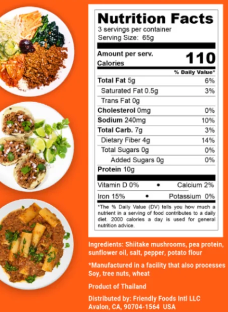 Ingredients: Shiitake mushroom, pea protein, sunflower oil, salt, pepper, potato flour