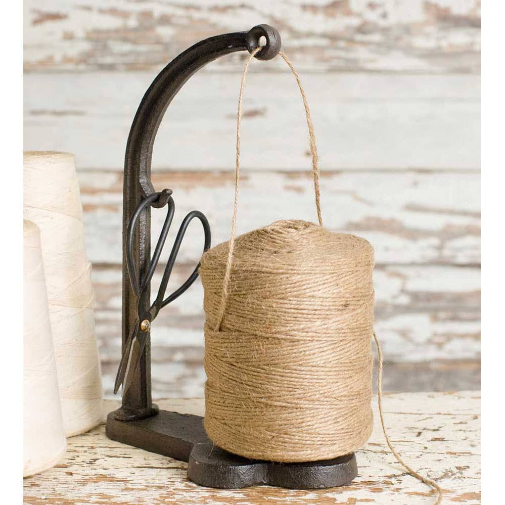 4''W x 6½'' x 10''H. This cast iron piece includes jute, scissors, and the stand.