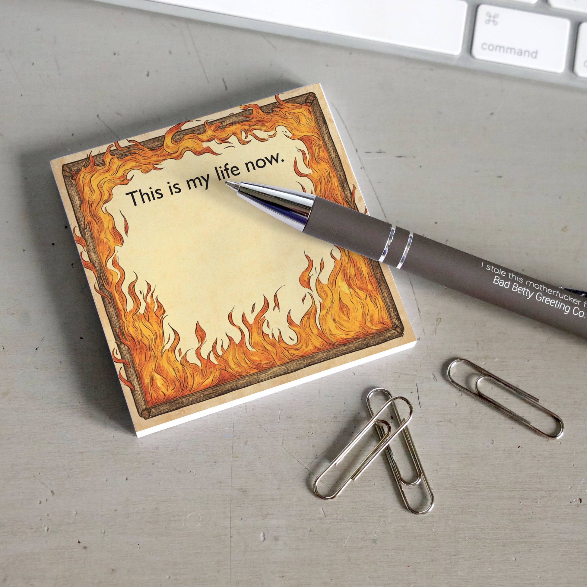 Embrace the chaos with our "This Is My Life Now" sticky note, surrounded by a fiery design that perfectly captures those moments when life feels like it’s a bit too much! Ideal for anyone navigating the daily grind with a sense of humor, this note is a sassy reminder that sometimes you’ve just got to accept your situation—flames and all.