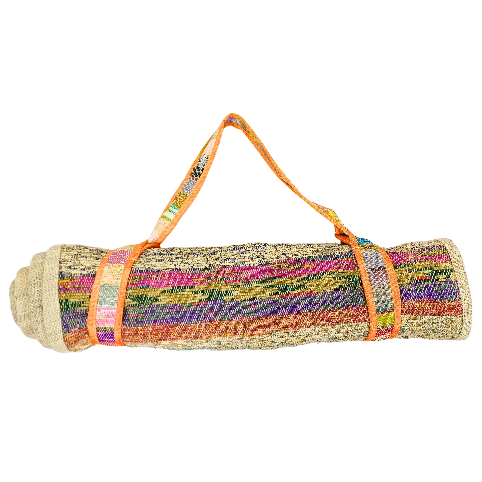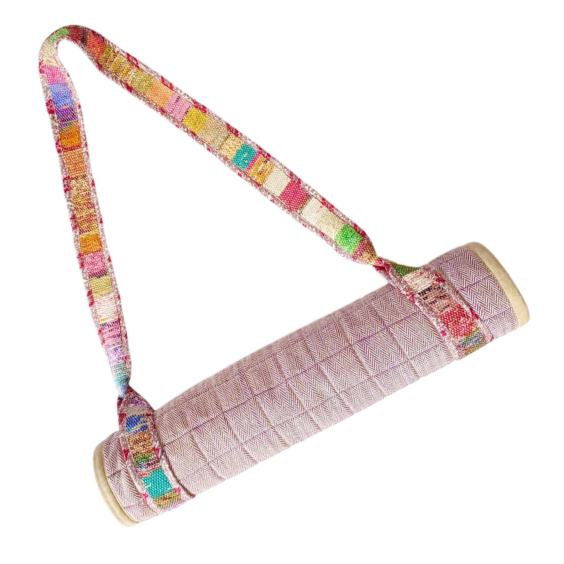 Dimensions: 41" Materials: Recycled fabrics Each piece is unique, handmade by our women using recycled fabrics. Therefore you will receive a selection of random colors and patterns. All our products are crafted with a love for craft and tradition, which makes each thread truly unique.