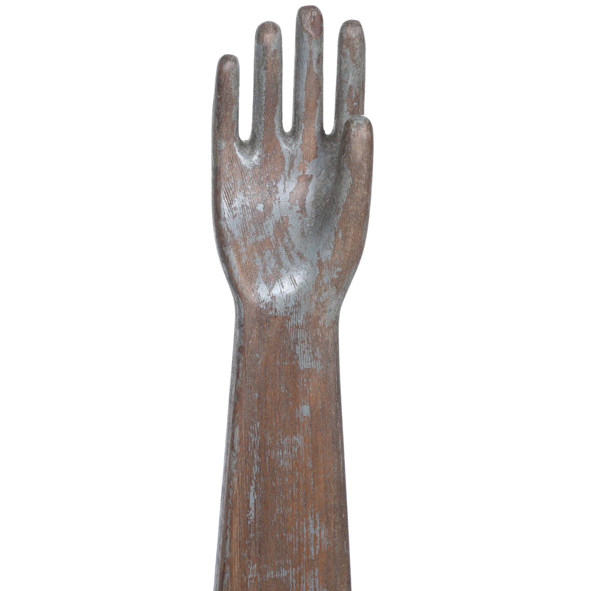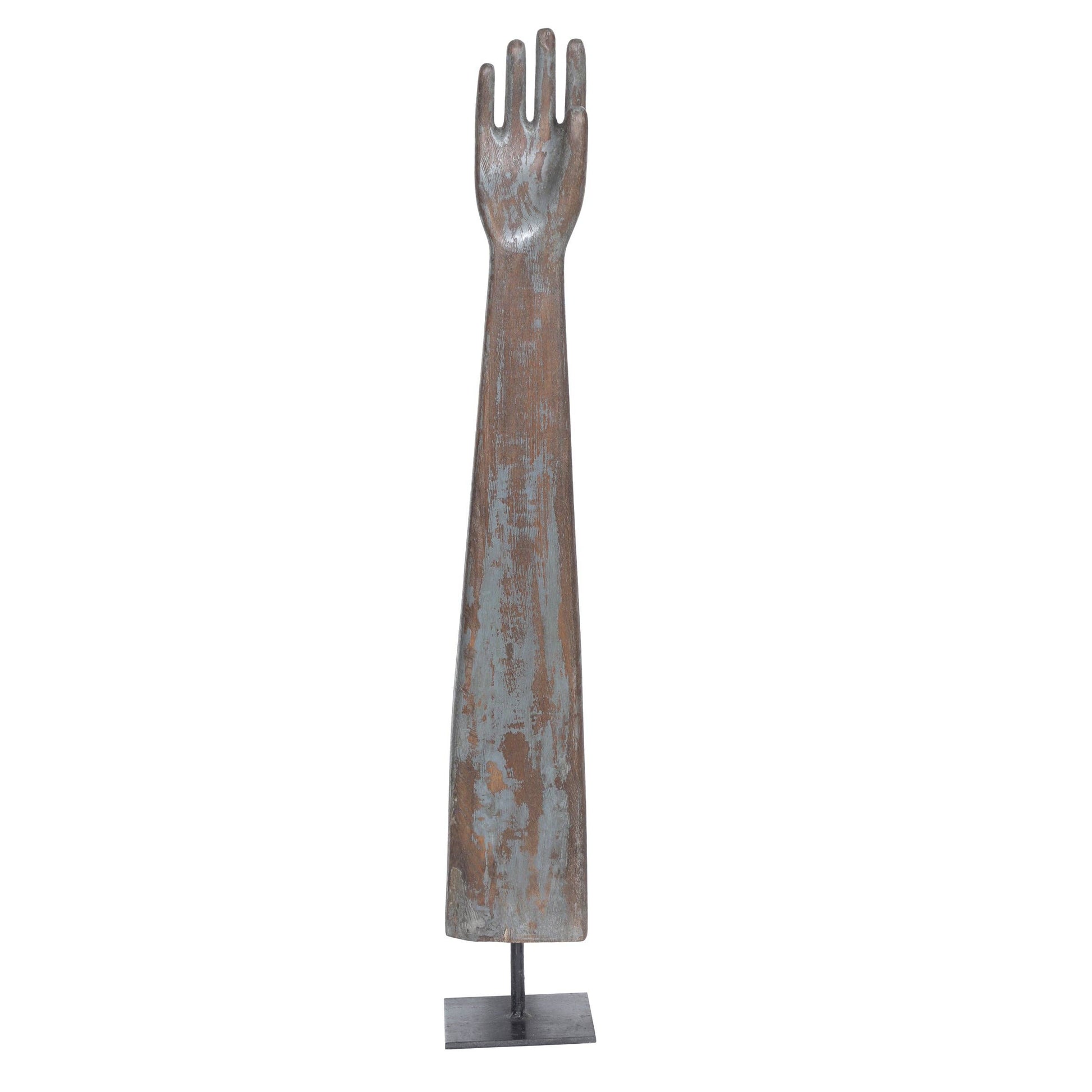 Our Wooden Glove Mold on Base transforms a collection of found, vintage teak glove molds from the Maharashtra state of India. After receiving a wax-coated finish to enshrine its character details, the Wooden Glove Mold is placed on a simple black metal base to create a handy home accent.