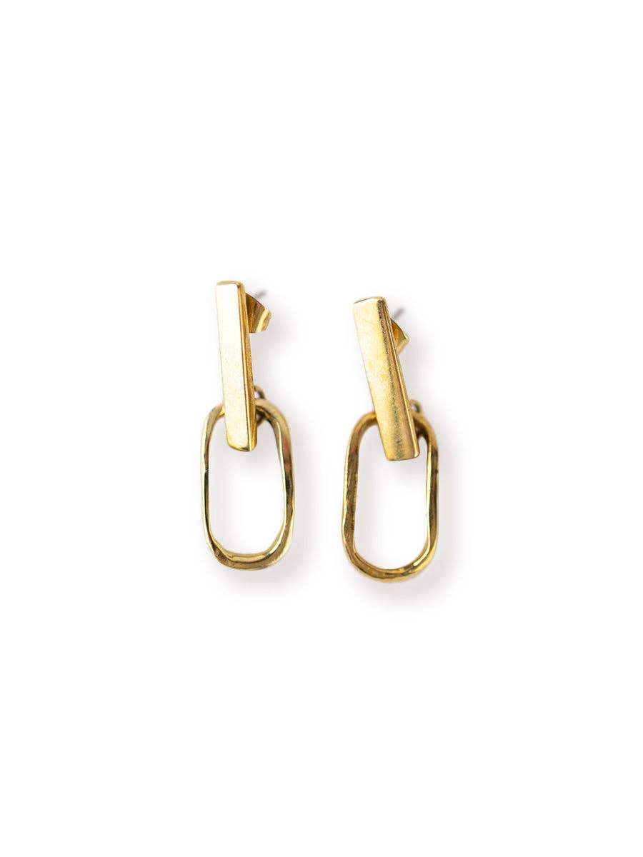 Add a touch of modern elegance with our Zola Earrings. These striking earrings have been hand cut, soldered and hammered by skilled artisans in the Kibera area of Nairobi, Kenya. The irregular shape of each solid brass link gives these earrings a unique, organic look. They are made of solid, polished brass.